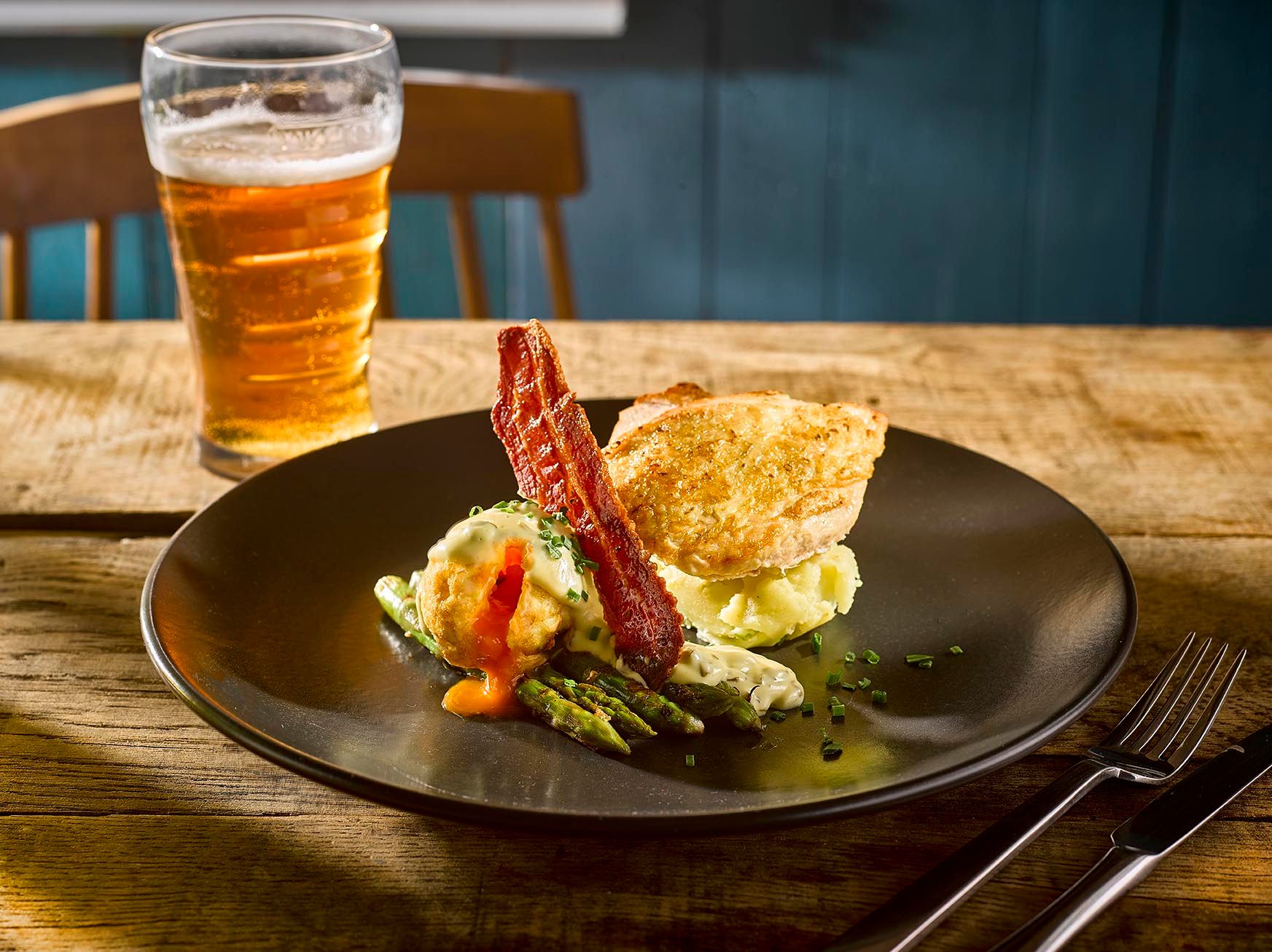 Our home-cooked seasonal dishes are perfect for cosy gatherings with friends and family in Ashley. Choose from delicious signature dishes like Roast salmon fillet, Slow braised lamb shank, Chicken Milanese and Venison & chestnut casserole. Also not forgetting timeless pub classics and hearty winter-warming pies, you can expect plenty of choice when looking through our menus. From MPA battered cod fillet to Luxury fish pie and Spiced three bean & red pepper hot pot there’s a dish for everyone.